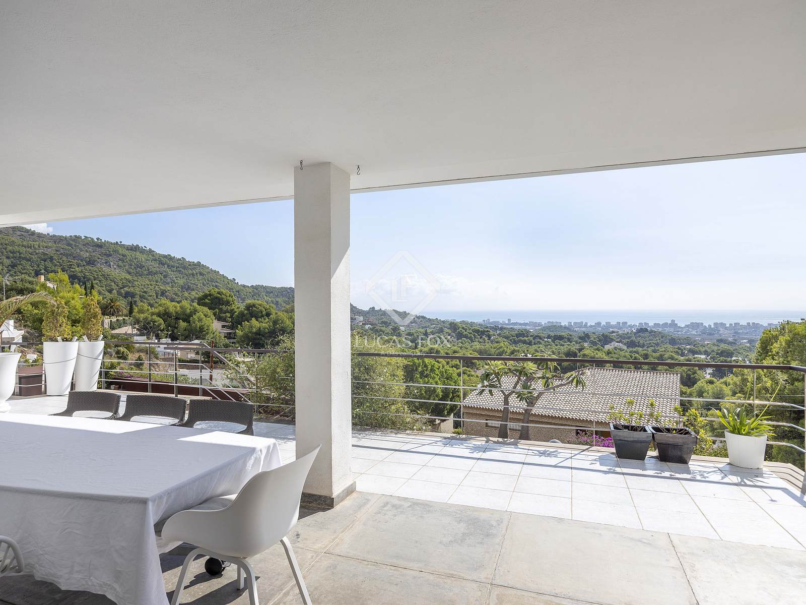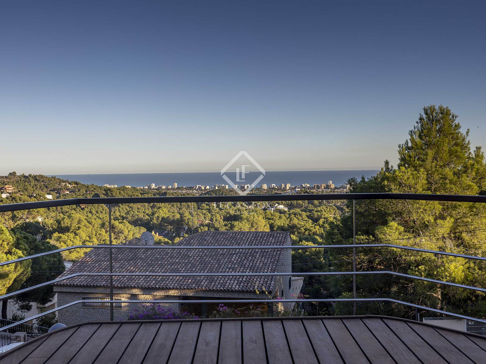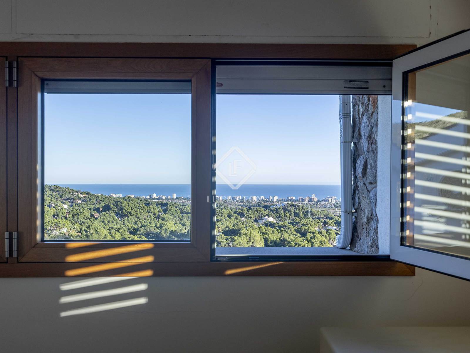 No topo da área residencial de Montornès, em Benicàssim, encontramos esta casa de design moderno, construída em 2000. É uma casa confortável para viver o ano todo, cercada pela natureza e com vista aberta para o mar.