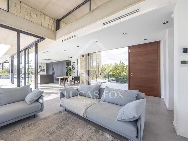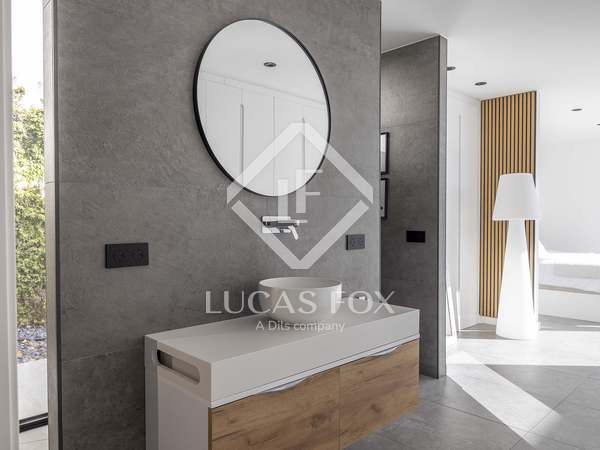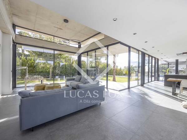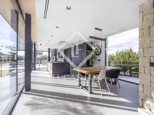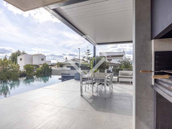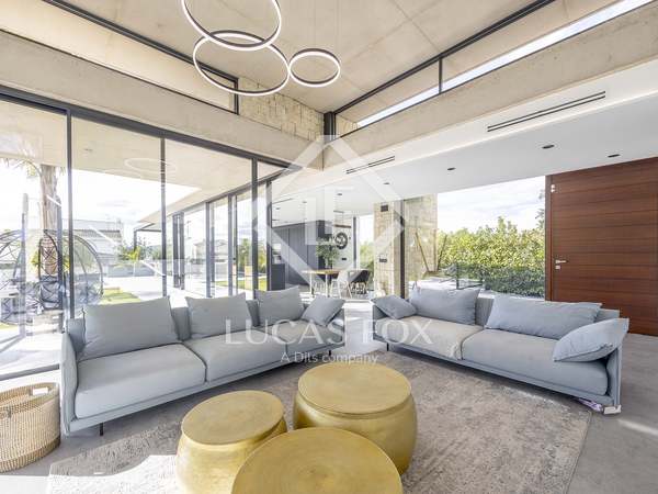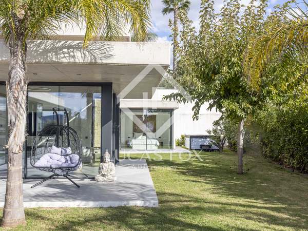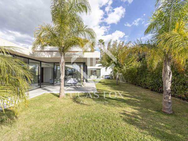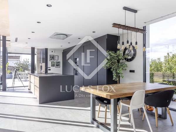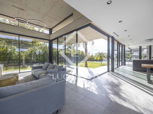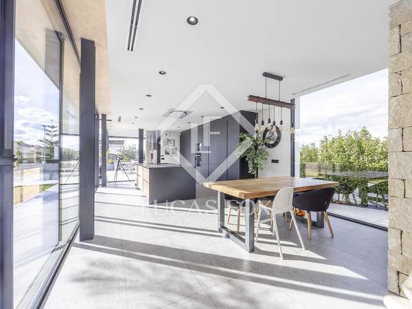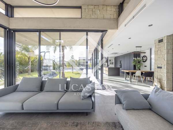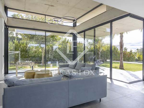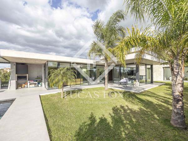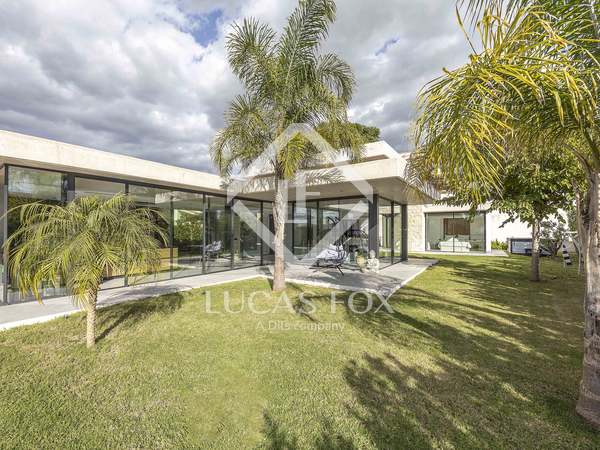Lucas Fox apresenta esta luxuosa casa com ótima qualidade de construção e uma criteriosa seleção de materiais à venda em La Eliana. A moradia exclusiva destaca-se por estar inserida num lote de quase 40.000m2, rodeada por extensos laranjais e múltiplas palmeiras de diferentes espécies. Está localizado num ambiente natural, longe da agitação da cidade, mas com excelentes ligações e apenas a 25 quilómetros de Valência. Na verdade, a menos de um quilômetro de distância há uma estação de metrô e a menos de três quilômetros de distância estão as cidades de La Eliana e Pobla de Vallbona.