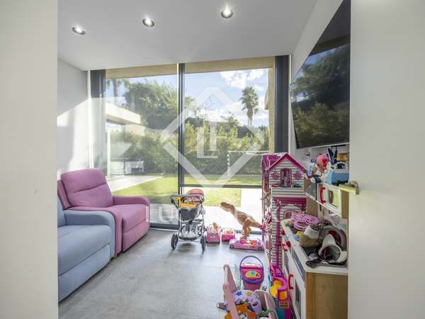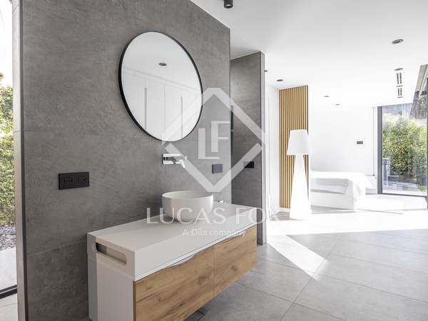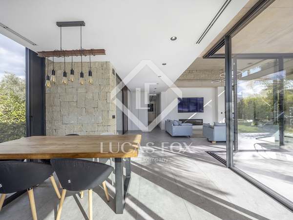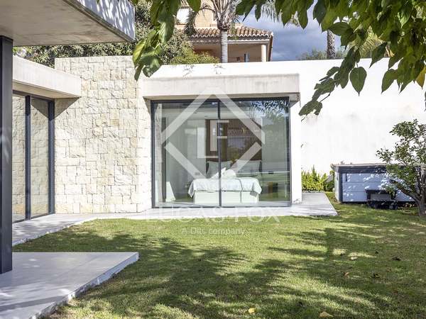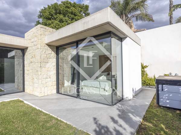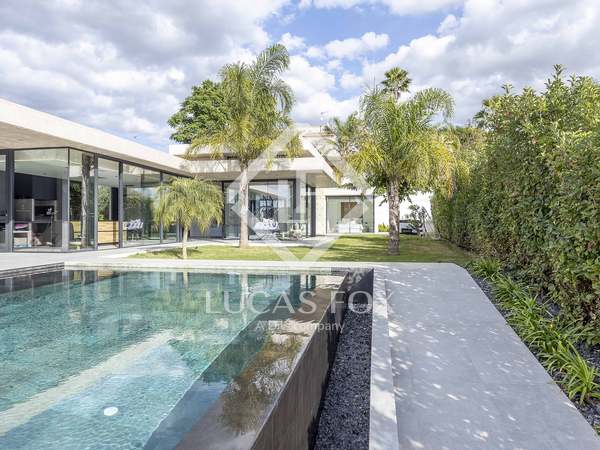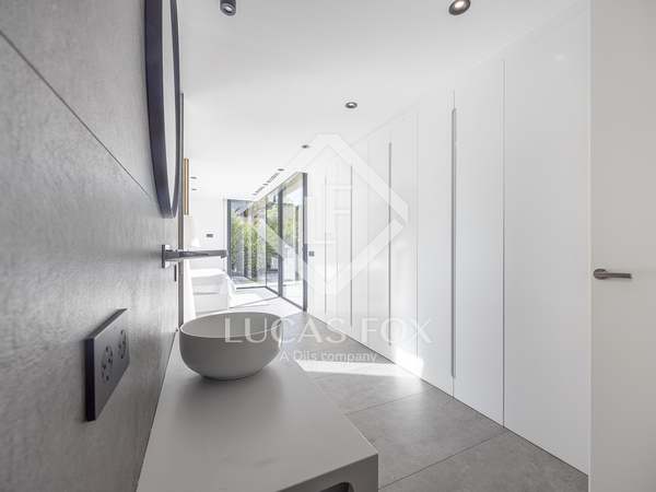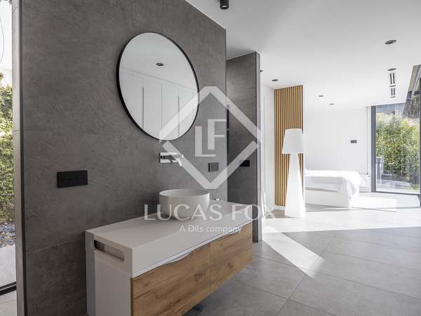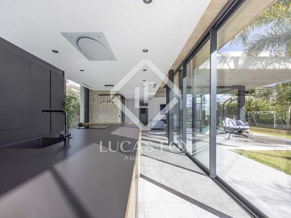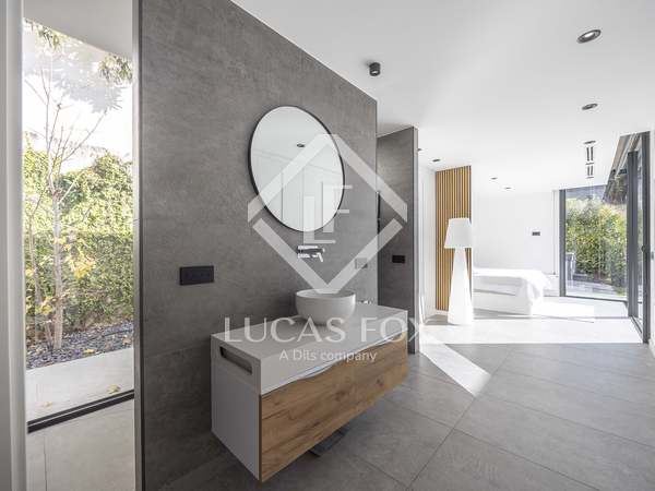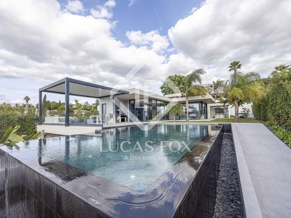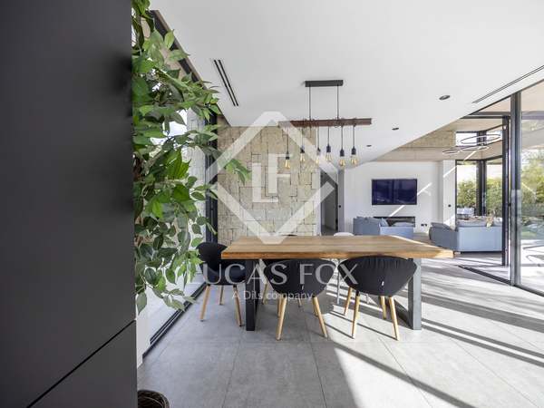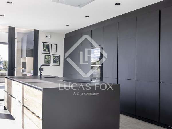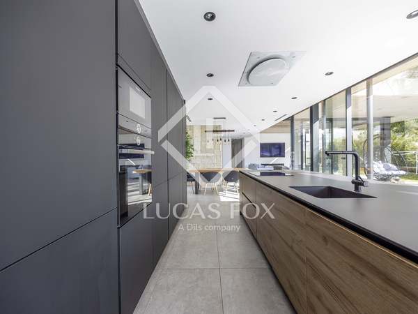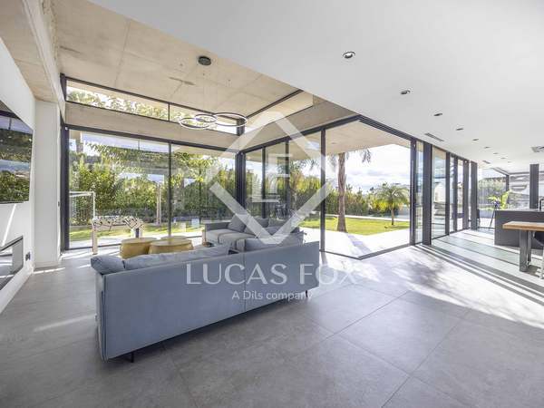Lucas Fox apresenta esta luxuosa casa com ótima qualidade de construção e uma criteriosa seleção de materiais à venda em La Eliana. A moradia exclusiva destaca-se por estar inserida num lote de quase 40.000m2, rodeada por extensos laranjais e múltiplas palmeiras de diferentes espécies. Está localizado num ambiente natural, longe da agitação da cidade, mas com excelentes ligações e apenas a 25 quilómetros de Valência. Na verdade, a menos de um quilômetro de distância há uma estação de metrô e a menos de três quilômetros de distância estão as cidades de La Eliana e Pobla de Vallbona.
