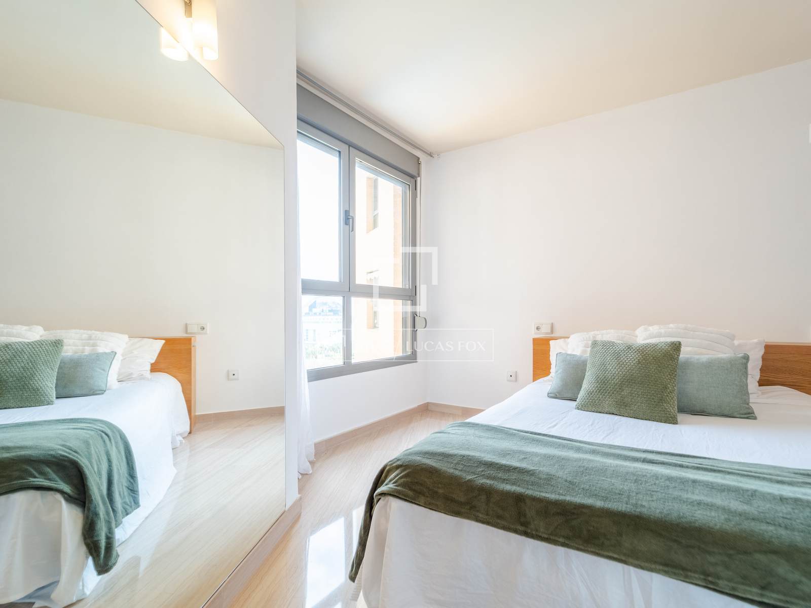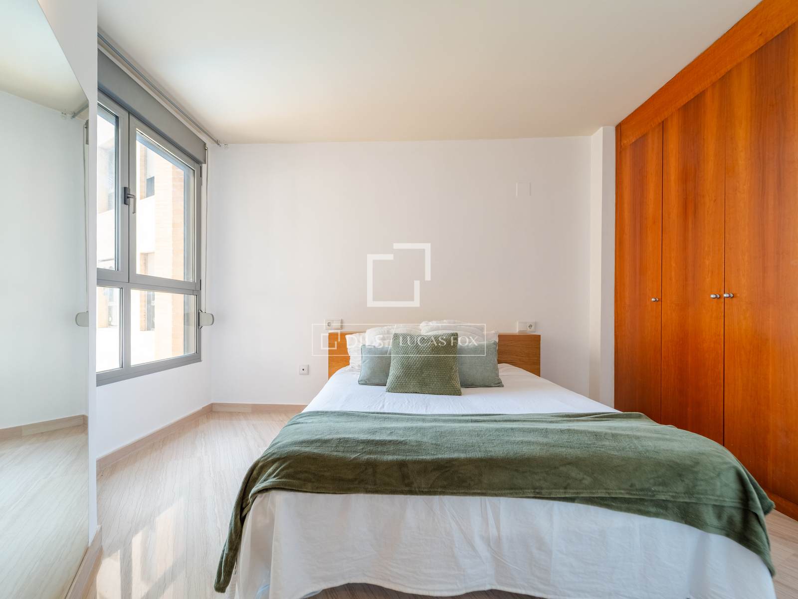 O apartamento possui uma planta prática com dois quartos, incluindo a suíte principal com banheiro privativo, e um segundo banheiro. A área social conta com uma magnífica sala de estar/jantar com acesso a um terraço com vista para a Cidade das Artes e das Ciências. Uma cozinha totalmente equipada e funcional completa a planta.