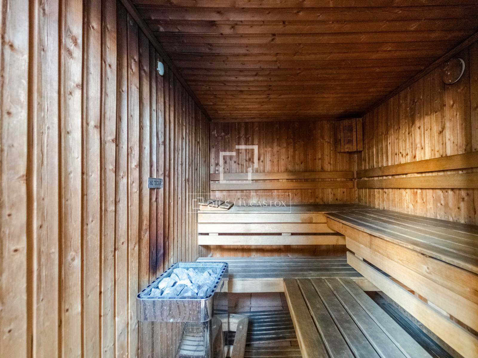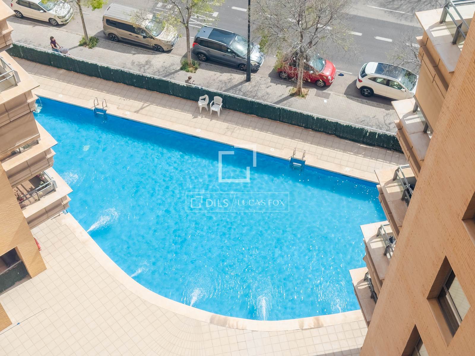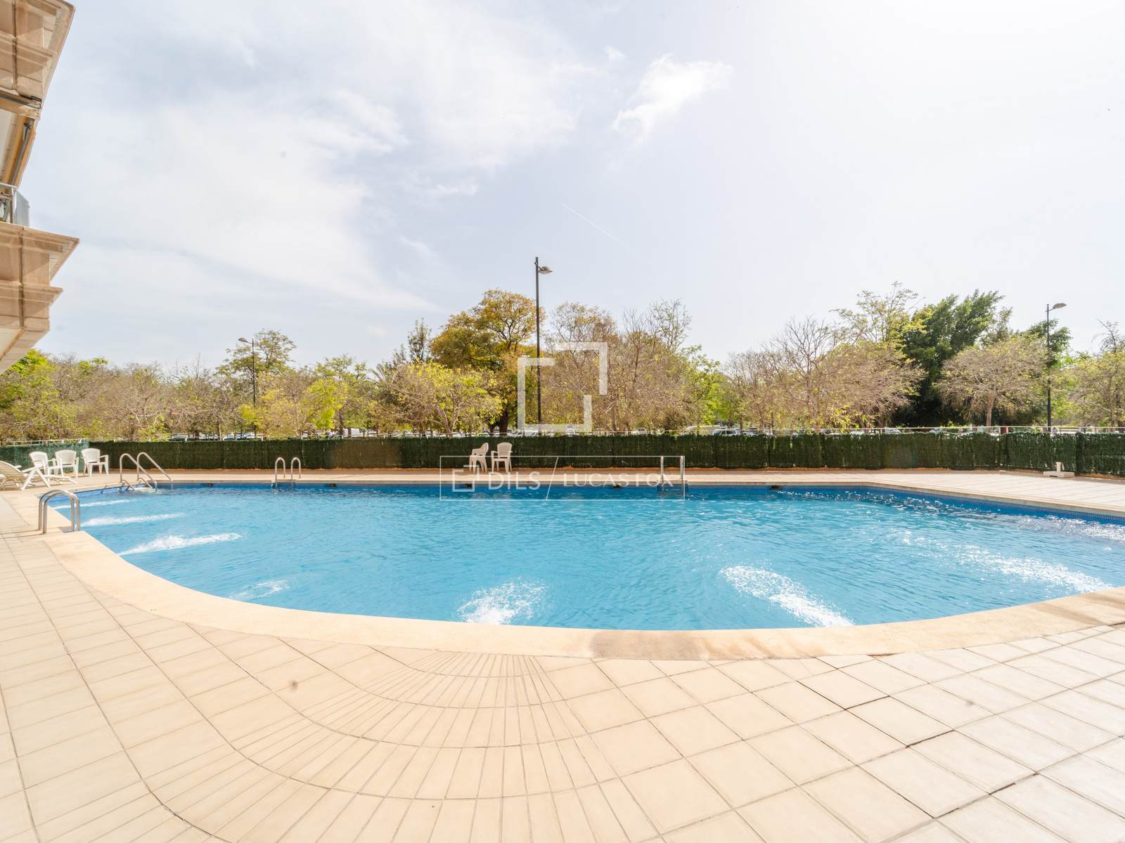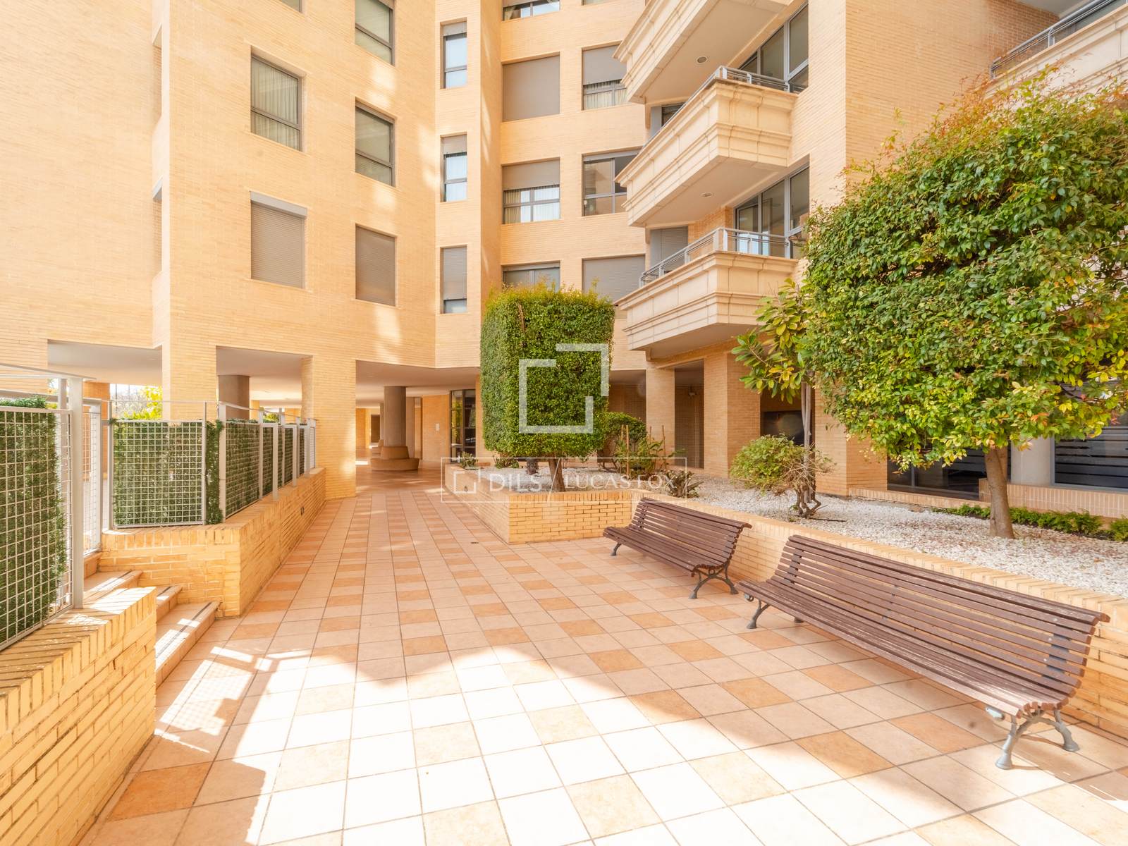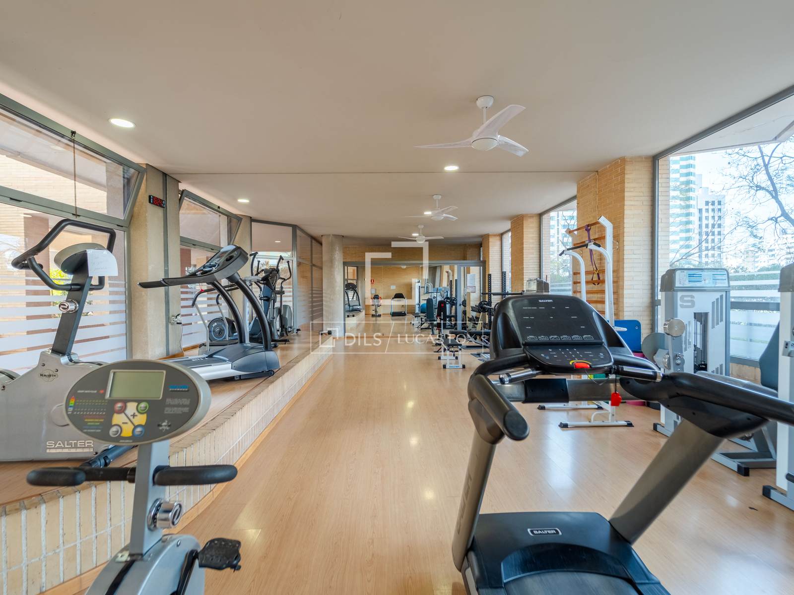 O preço de venda inclui uma vaga de estacionamento e um depósito. O imóvel está localizado em um condomínio residencial com portaria 24 horas, piscina, academia com sauna e clube social, de frente para os jardins do Rio Turia.
