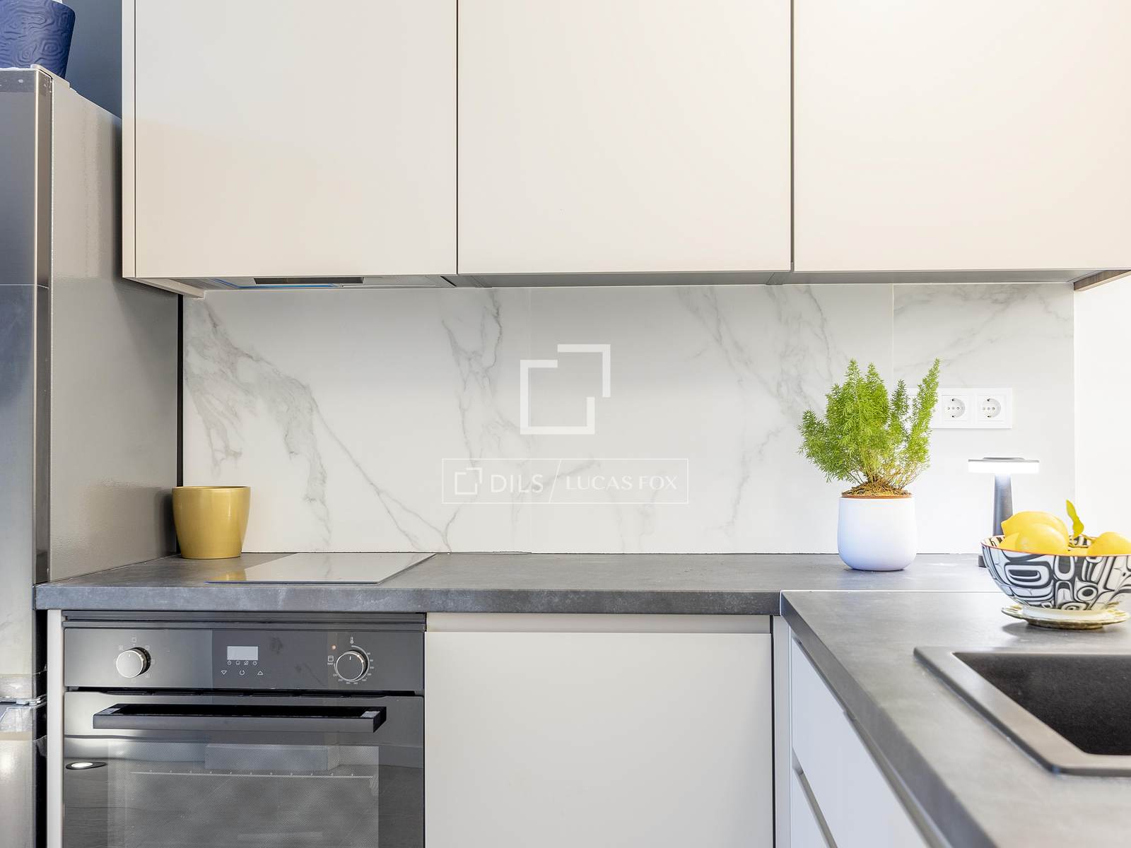 A cozinha moderna e totalmente equipada inclui forno, placa de indução ou vitrocerâmica, exaustor, máquina de lavar louça e frigorífico, integrando-se perfeitamente na sala de estar. Também dispõe de máquina de lavar e secar roupa.