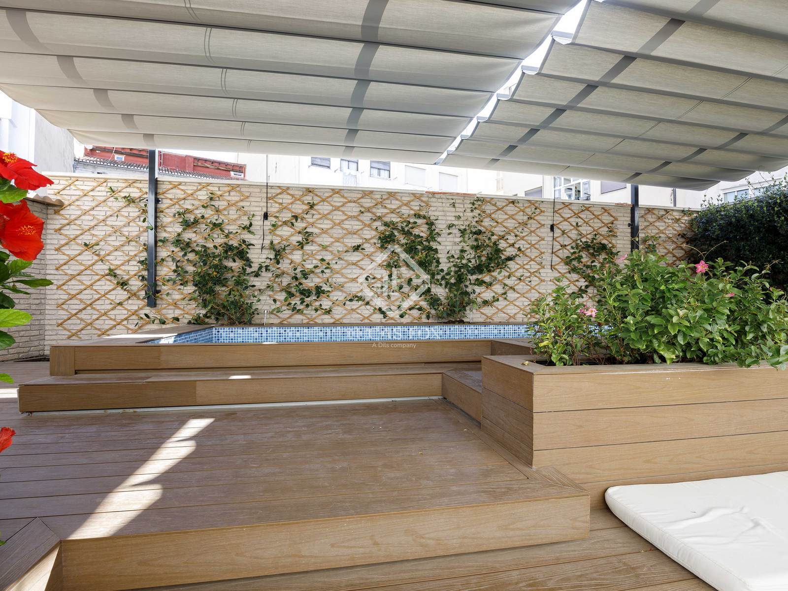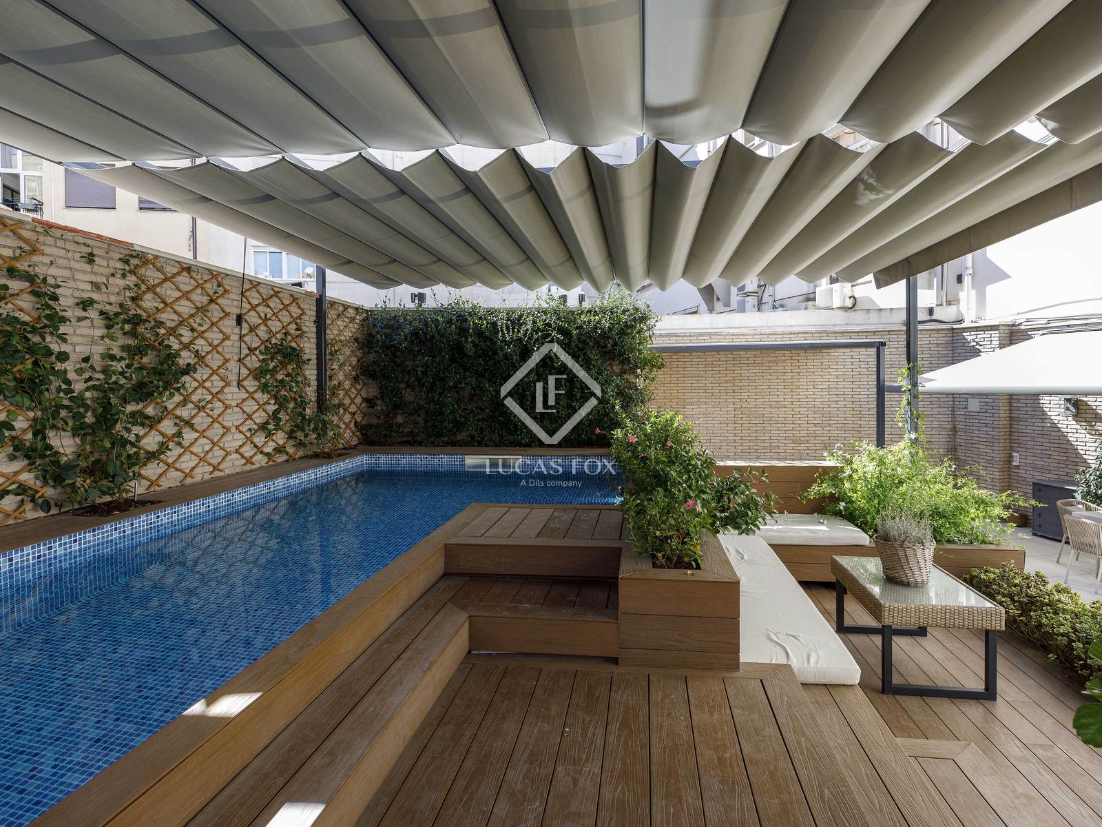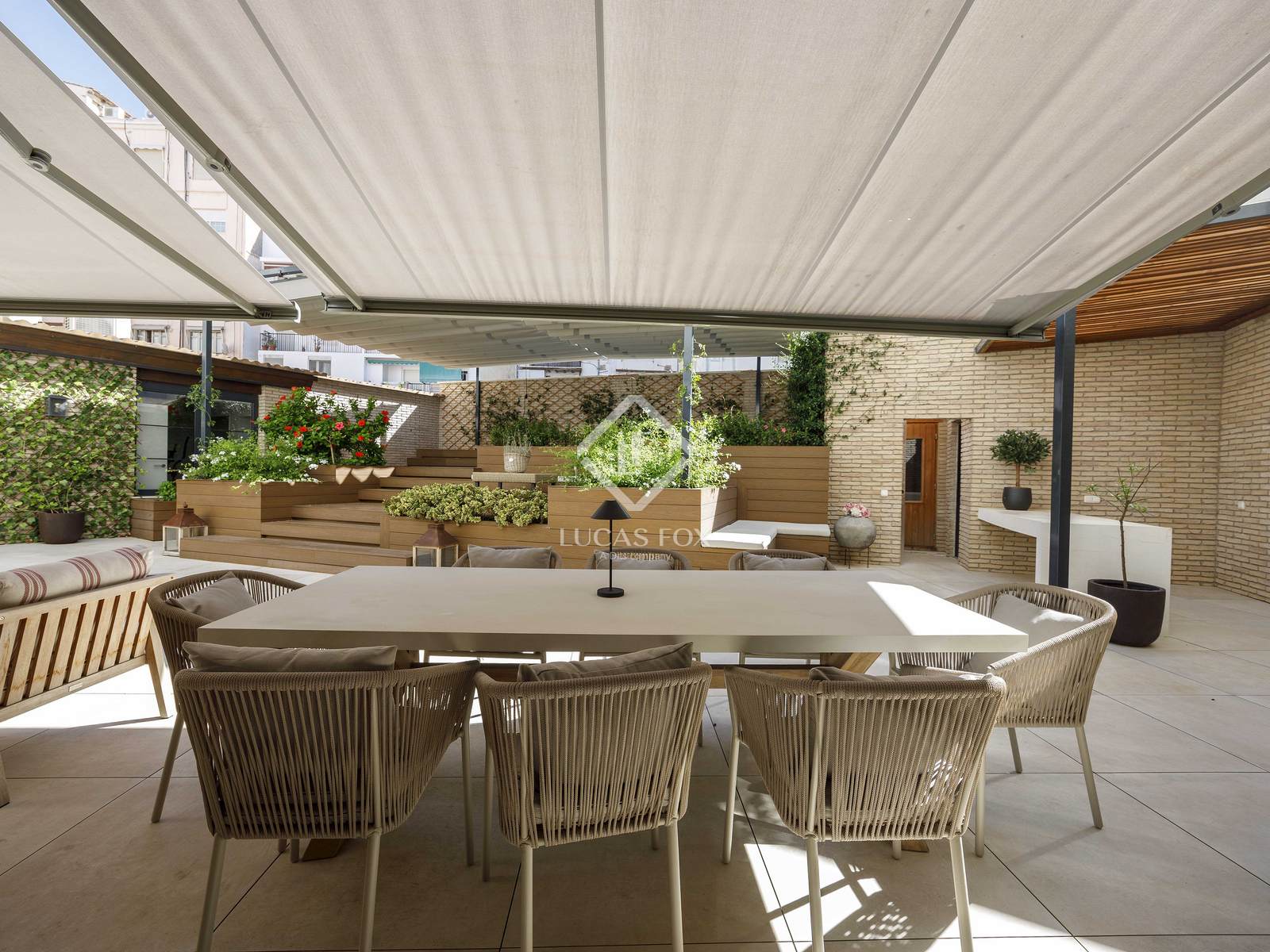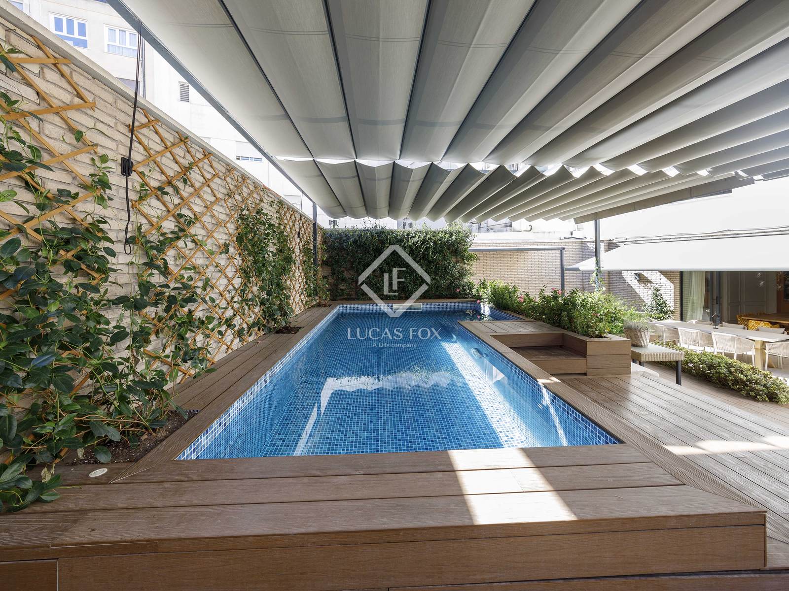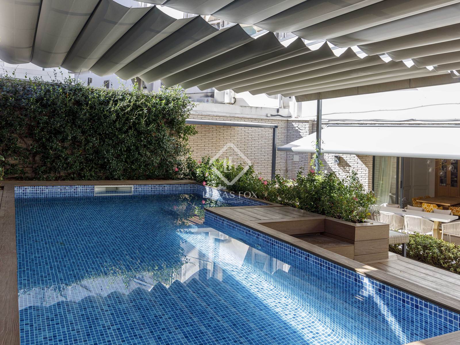 Este espaço externo voltado para o leste é único em Valência e transforma a casa em um verdadeiro oásis urbano. Com mais de 200 m², o terraço oferece uma experiência de vida comparável à de uma vila particular: piscina aquecida com jato de água em contracorrente, sauna finlandesa de madeira natural, academia, sala de estar de inverno com lareira, áreas de estar e jantar ao ar livre e uma área projetada para acomodar uma cozinha de verão, perfeita para desfrutar do clima mediterrâneo o ano todo e receber reuniões em um ambiente absolutamente privilegiado. Além disso, uma lavanderia separada, mas conectada, e áreas técnicas proporcionam funcionalidade sem interferir na estética deste espaço extraordinário.