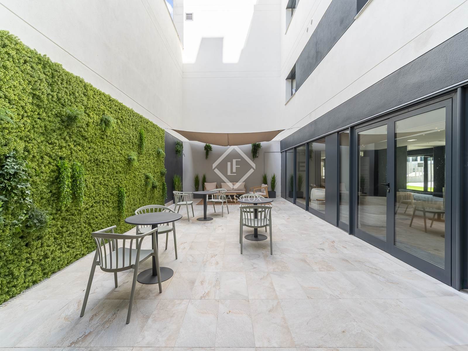 Les Terrasses é um condomínio residencial com uma ampla gama de áreas comuns: piscina, academia, área de relaxamento, quadra de pickleball, sala multiuso, espaço de coworking e solário, além de serviços adicionais como concierge, armários inteligentes e áreas ajardinadas. O empreendimento possui classificação energética A, graças aos seus sistemas aerotérmicos e fotovoltaicos e ao uso de materiais ecoeficientes, oferecendo casas sustentáveis e ecologicamente corretas.